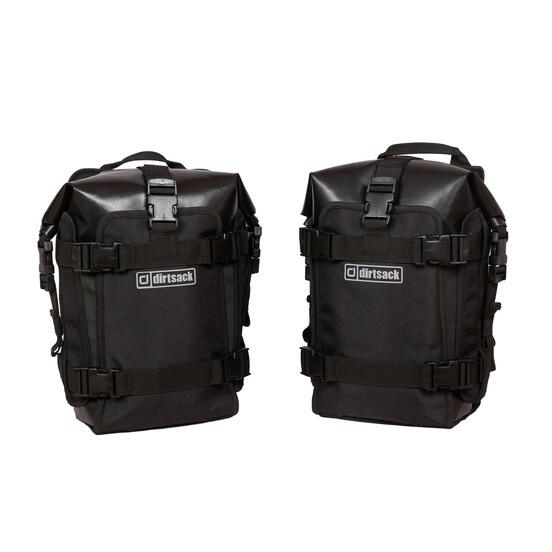 Though designed to be mounted on Crash Bars or Engine Guards of ADVs and Enduro motorcycles, the CS can also be secured to the tops of the Dirtsack Llama hard panniers or other rear hard panniers or mounted on pannier frames, rear racks and the pillion seat, with the use of additional tie down straps.