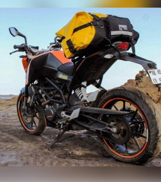 Purely utilitarian is one description, No Bloody Nonsense, maybe another..Badass could be your’s! This is our Butch, On-your-face, Chunkiest, Largest, Utterly and Completely Waterproof and Weatherproof Tailbag. No Frills No whistles. Load her up to the 50 Lts Capacity, and ride her through hell and high water…she won’t notice!