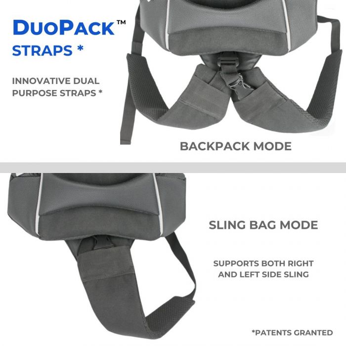 - Convertible to a Backpack and a Sling bag with supplementary straps.