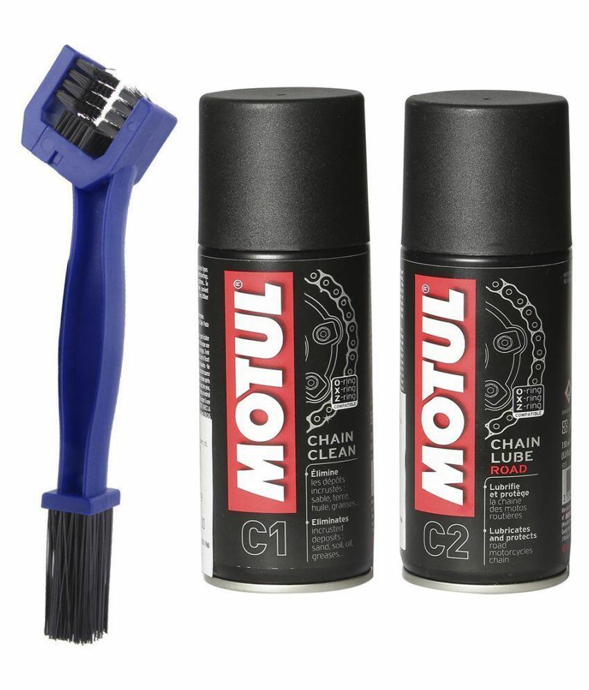 Combo kit of the Motul C1, C2 and a chain cleaning brush.