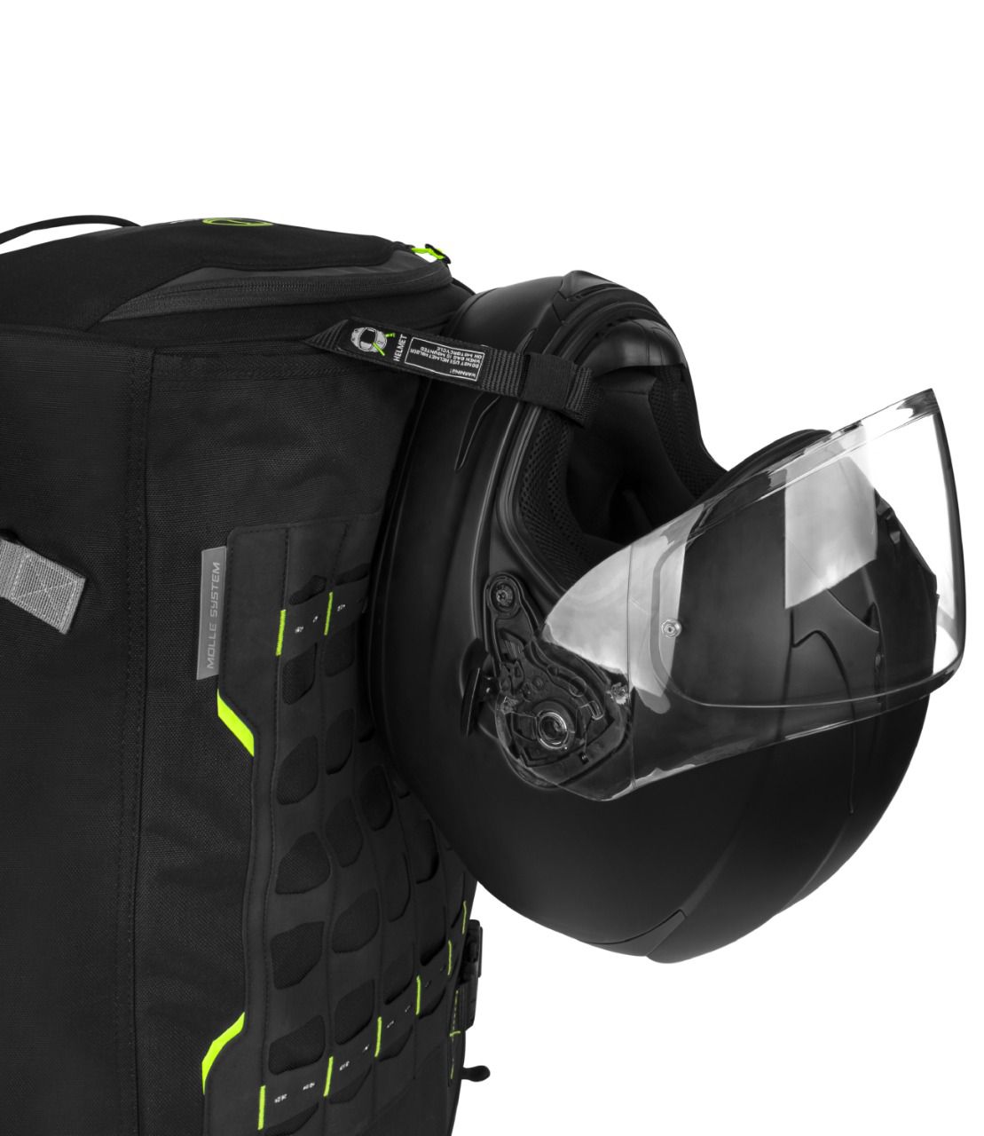 - Helmet Holder – Attach helmet to the bag in backpack mode*