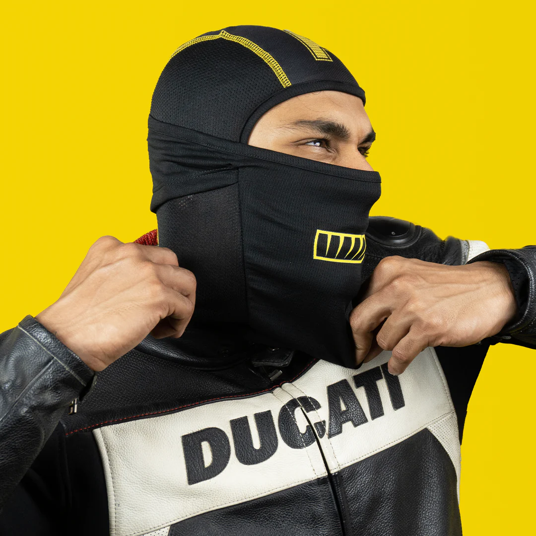 No scrunch tuck-fit makes it the perfect companion for your helmet